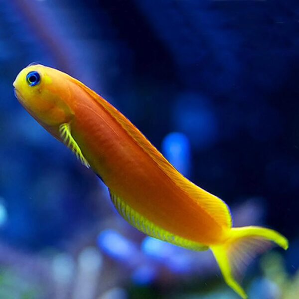 The Midas Blenny is an excellent candidate for a reef tank. It is a beautiful, deep golden-yellow with a shadow of blue under the chin and bright, blue-rimmed eyes. When swimming, the motion they use is very eel-like.